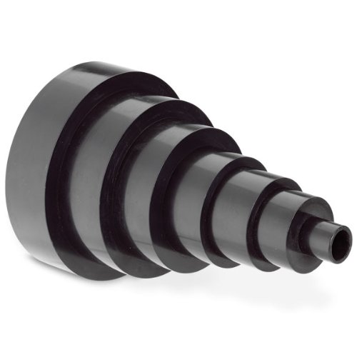 These economical fittings will help you build a high performance dust extraction system for your shop. Made of ABS plastic (except for the aluminum blast gates), these fittings are designed to stand up against the abrasive nature of saw dust and wood fiber. Universal Tool Adapter adapts your wet/dry vacuum hose to stationary or portable power tools. Its constructed of a tough material and conforms to slight variations in size. The "stepped" design contains a 1", 1-1/4", 1-1/2" and 2" external diameter and a 1-1/4", 1-1/2" and 2-1/2" internal diameter connection. It also has a square flange with mounting holes that can be used with a collection box. Because of the danger of static electricity involved with dust collection we highly recommend the book Dust Collection Basics #85O17 to be read prior to any installation. Six to 1 Universal Adapter includes 6, 5, 4, 3, 2 1/2, 2 and 1 sizes.